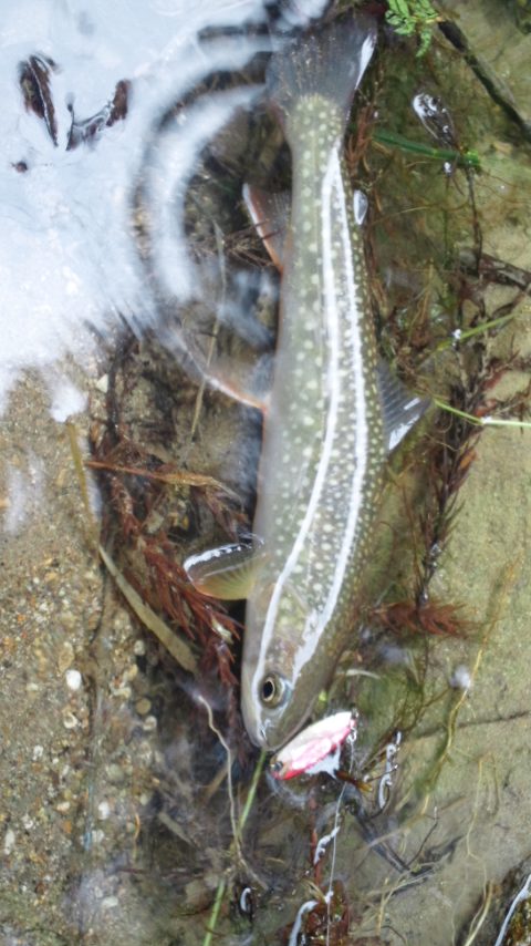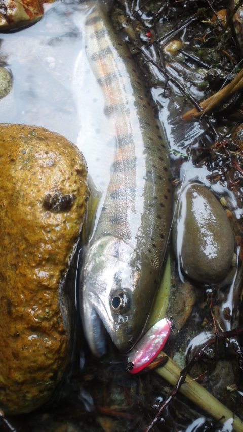 流木スタックしている際ギリギリで今日イチのヤマメがヒット !