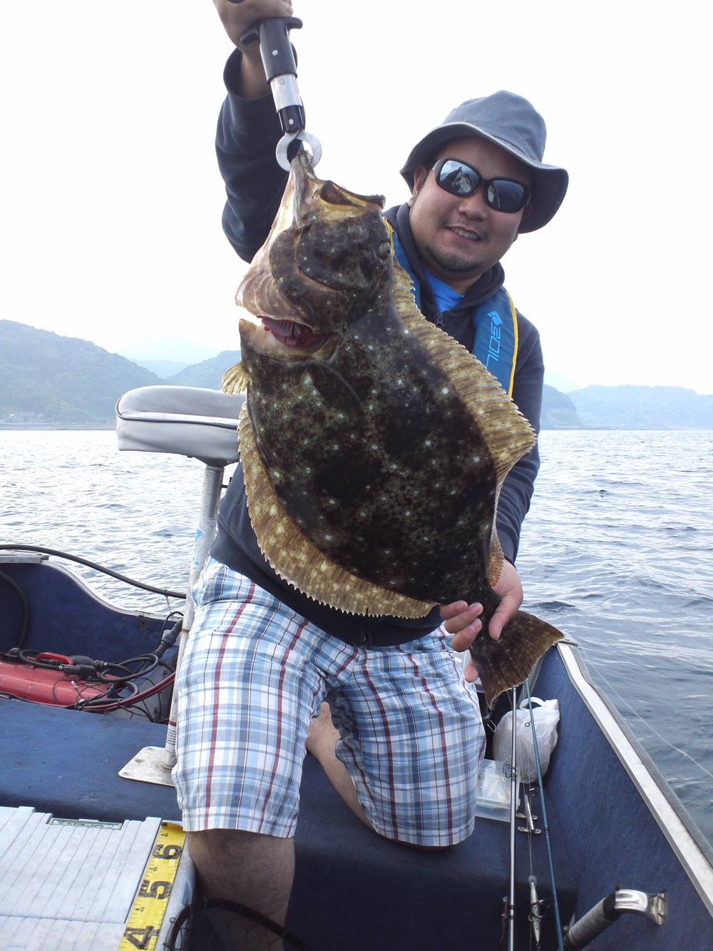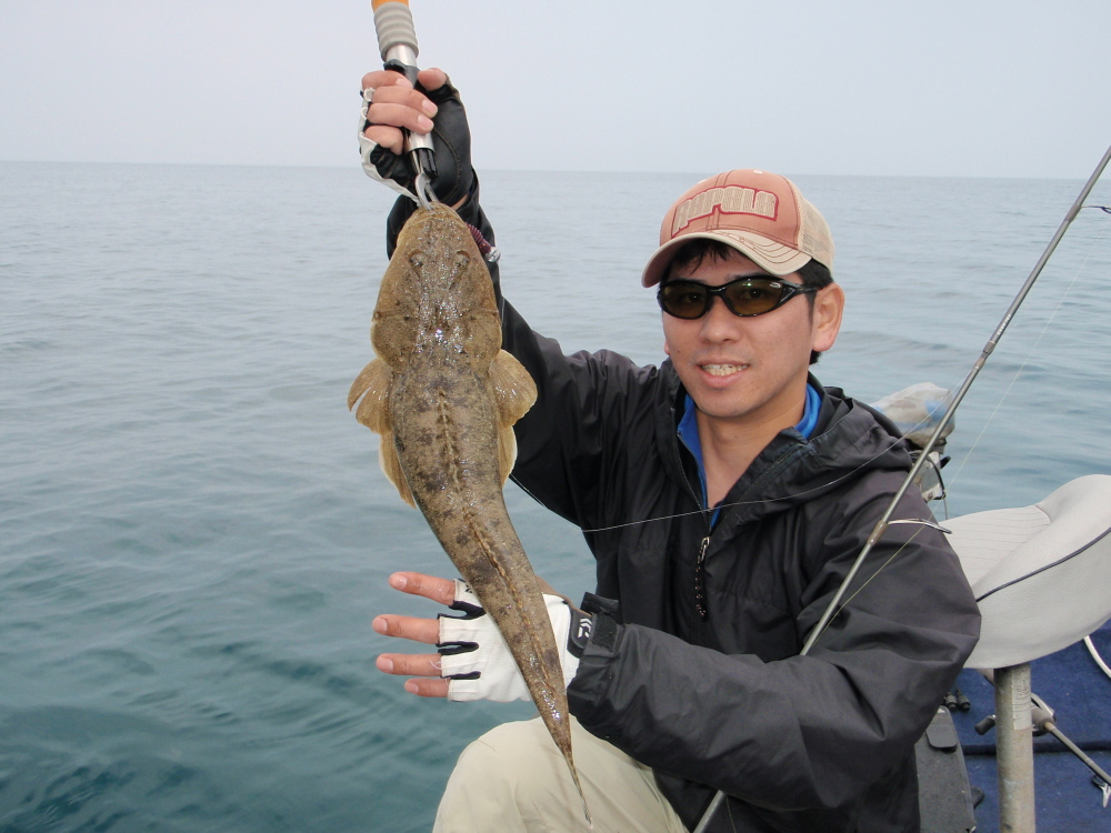 水温も安定し、シーズンINした模様のフラットを狙って出撃して来ました。まずインレットの絡む砂底8mライン。いれば一発でしょ~なんて余裕でエントリーしました。というのも、先日のロック大会にてフラットで速攻リミットメイクの話があったからです。しかし、あそこで釣れるなら・・・の予想はあっさり覆されました。超ショートバイトの連続、追ってくるもUターンの繰り返しで、強いリグでバーンと行きたかった私たちは苦戦することに・・。TKS君に40くらいのヒラメがヒットするも後が続かず、私もスピニングに持ち替えて真面目にやる事にしました。暫くして「コッ」とショートバイト。即合わせで・・のりました!グッドサイズのマゴチです。