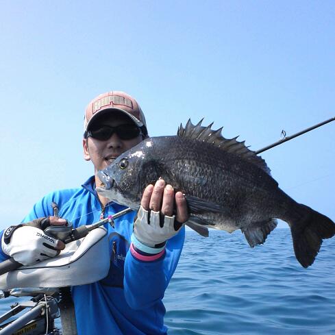 モヤッとしたバイトが続き、釣れるのは良いのですが、これでは何かスッキリせずです。移動しようかとTKS君に声を掛けようと振り向くと、なんとこのタイミングでMLロッドがこれでもかと言わんばかりにブン曲がってます!!ついにマダイかっ!と盛り上がりますがどうも様子が違います。「重いぃ~」とTKS君。約10分の格闘の末あがってきたのは・・・