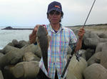 早々昼過ぎに上がり、お次は石巻港沖堤へ移動。