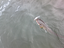 こいつはデカイ!と慎重にやりとりするも一気に水面まで浮かび上がり