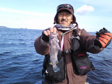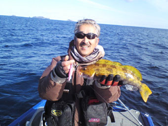 しかしウネる外洋での釣りの中スーパーグロッキーになり湾内へ避難。