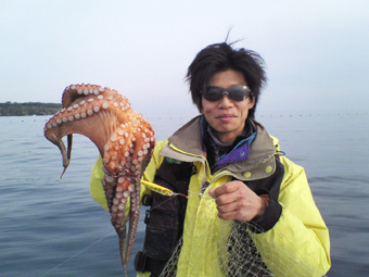 思わぬ珍客が弟のロッドにヒット、ナント!立派なマダコでした。