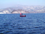 湖上に浮かんでみると水色は冬のグレーではなく、