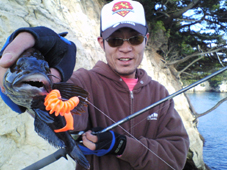 自分でも信じられない結果、オールキッカーの3アイナメ。目測でも4kg越え!!