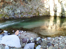 こちらは支流ほど砂の影響はなく、逆に深く抉られたりした渓層のお陰で