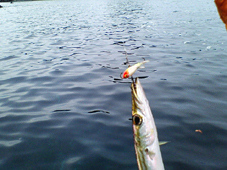 コツン!とうやく来たバイトはシーバスではなくカマスでした。
