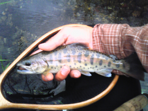 そして夕刻間近、いつも立ち寄る堰堤下では、尺絡みのイワナが5連発。