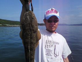 本命、フラットはと言うと、50UPのマゴチをキャッチ出来たものの