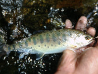 低水温を好むイワナが更に上流に登り、イワナほど低水温でなくてもよいヤマメも