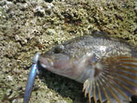 潮止まり間際漸くヒットしたのは手のひらサイズのソゲ(ヒラメの子供)
